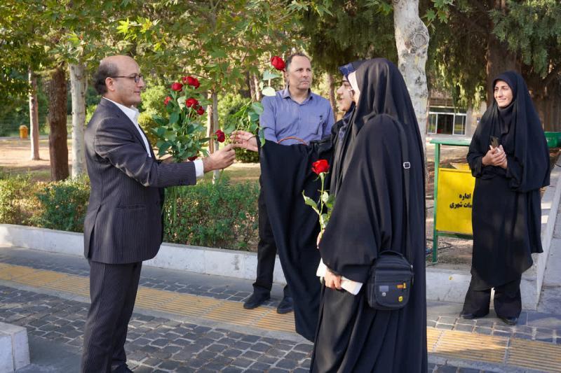 استقبال از دانشجویان در آغازین روز سال تحصیلی جدید با اهدای گل