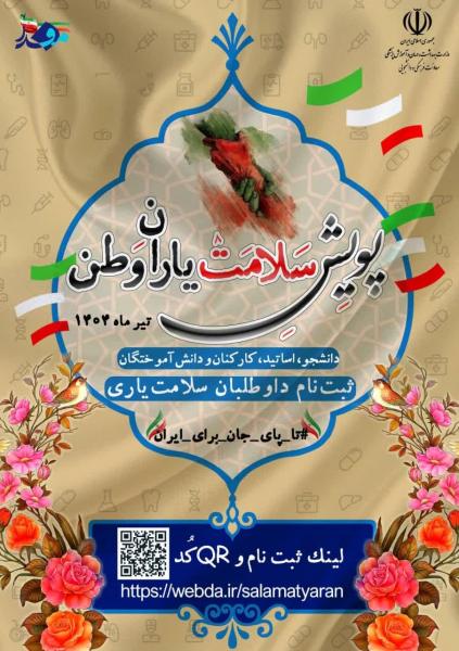 برای اعلام داوطلبی در زمینه‌های: پزشکی، پیراپزشکی، پرستاری، بهیاری، مشاوره، روان شناسی، مددکاری، آموزش امداد و کمکهای اولیه، امدادرسانی، اجرای برنامه های فرهنگی، اجرای برنامه های فرهنگی ویژه کودکان، همکاری با مفدا(تولید محتوای مجازی)، عیادت از خانواده شهدا، مجروحان و آسیب دیدگان، کمک در اسباب کشی، بازسازی منازل و اماکن آسیب دیده، تامین دارو و لوازم بهداشتی و تامین سبد تغذیه و... در آدرس http://webda.ir/salamatyaran بما بپیوندید.