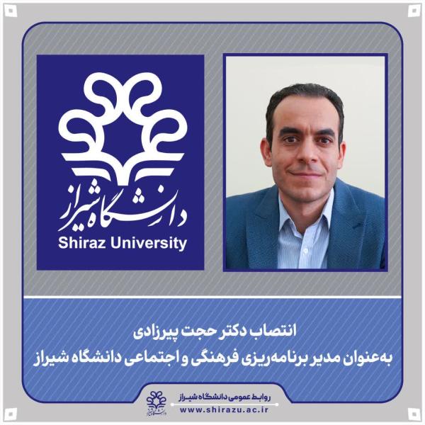 به ‌گزارش روابط‌عمومی دانشگاه شیراز، طی حکمی ازسوی معاون فرهنگی اجتماعی دانشگاه شیراز، دکتر حجت پیرزادی، عضو هیئت علمی بخش کودکان استثنائی دانشکده علوم تربیتی دانشگاه، به‌عنوان مدیر برنامه‌ریزی فرهنگی و اجتماعی دانشگاه شیراز منصوب شد.