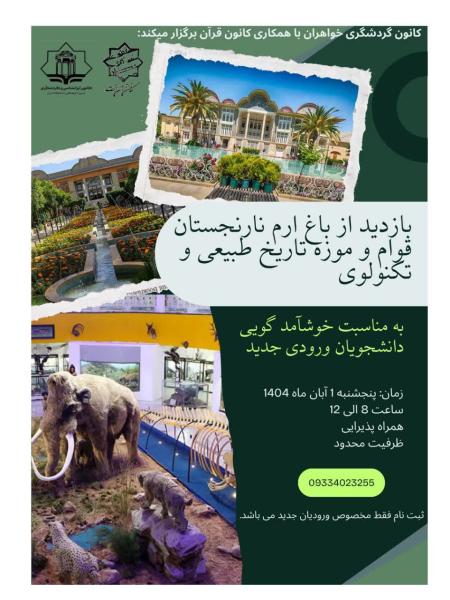 بازدید از باغ ارم ، نارنجستان قوام و‌ موزه تاریخ طبیعی و تکنولوژی