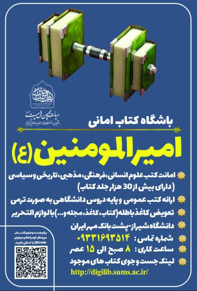 امانت کتب علوم انسانی، فرهنگی، مذهبی، تاریخی و سیاسی (دارای بیش از ۳٠هزار جلد کتاب)