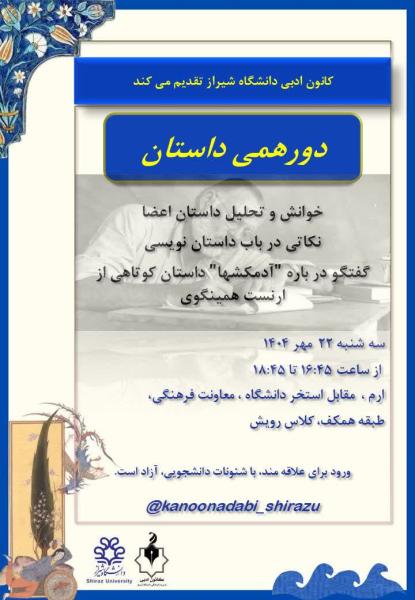 کانون ادبی معاونت فرهنگی دانشگاه شیراز تقدیم میکند: