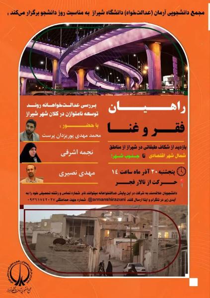 مجمع دانشجویی آرمان (عدالت خواه) دانشگاه شیراز به مناسبت روز دانشجو برگزار می کند:
