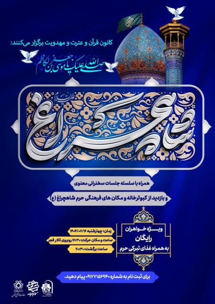 زیارت حرم حضرت احمدبن موسی الکاظم (ع) همراه با سلسله جلسات سخنرانی معنوی و بازدید از کبوترخانه و مکان های فرهنگی حرم شاهچراغ (ع)