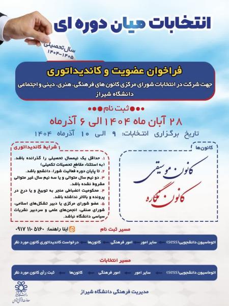 فراخوان عضویت و کاندیداتوری جهت شرکت در انتخابات شورای مرکزی کانون های موسیقی و نگاره دانشگاه شیراز