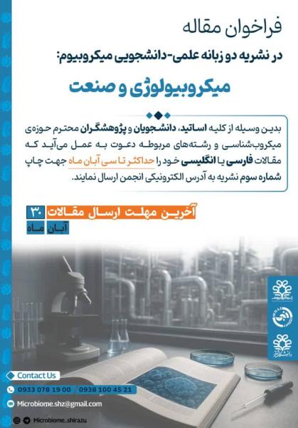 فراخوان مقاله در نشریه دو زبانه علمی-دانشجویی میکروبیوم: *میکروبیولوژی و صنعت*