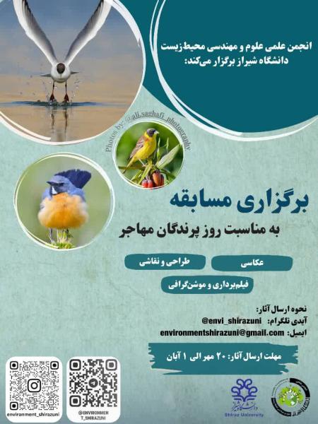 مسابقه : عکاسی نقاشی و طراحی فیلم برداری و موشن‌گرافی با محوریت پرندگان مهاجر و بومی ایران