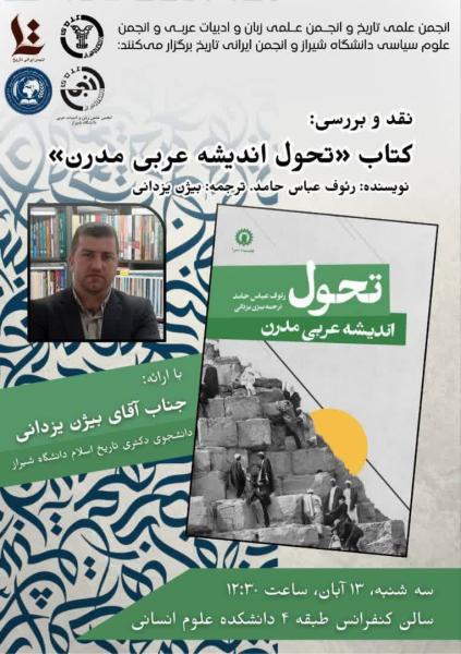 انجمن‌ علمی تاریخ دانشگاه شیراز و انجمن ایرانی تاریخ و انجمن علوم سیاسی دانشگاه شیراز و انجمن علمی زبان و ادبیات عربی دانشگاه شیراز برگزار می کنند: