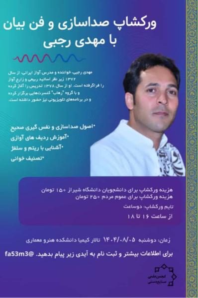 این ورکشاپ یک فرصت عالی برای علاقه‌مندان به موسیقی و صدا است تا با یادگیری فنون صداسازی و فن بیان، توانایی‌های هنری خود را ارتقا دهند.