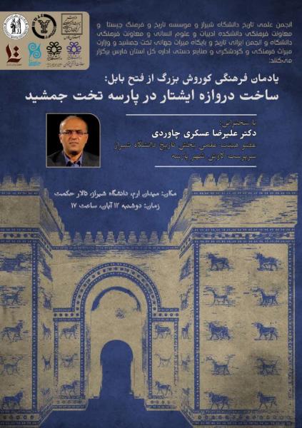 انجمن علمی تاریخ دانشگاه شیراز با همکاری مؤسسه تاریخ و فرهنگ جمشید و حمایت دانشکده الهیات و علوم انسانی، مراسمی با عنوان یادمان فرهنگی «کوروش بزرگ از فتح بابل تا ساخت دروازه ایشتار» در پارسه تخت جمشید برگزار میکند.